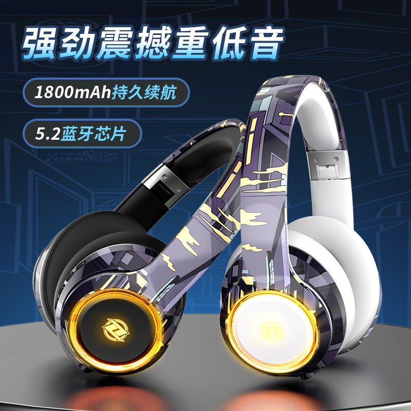 国潮落書きヘッドセット無線bluetoothヘッドセット発光重低音騒音低減ゲームクロスボーダー爆金直売卸売り