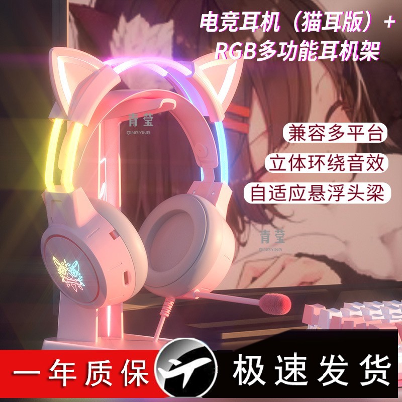 Bluetooth ヘッドセット ヘッドマウント ワイヤレス 有線 3 または 4 モード ガールズ 猫耳 e スポーツ ゲーム コンピューター 携帯電話 ユニバーサル