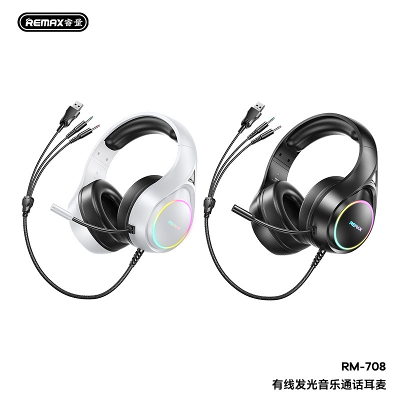 REMAX 有線発光 RGB 照明効果音楽通話ヘッドセットコンピュータ e スポーツマイク付きヘッドセット RM-708