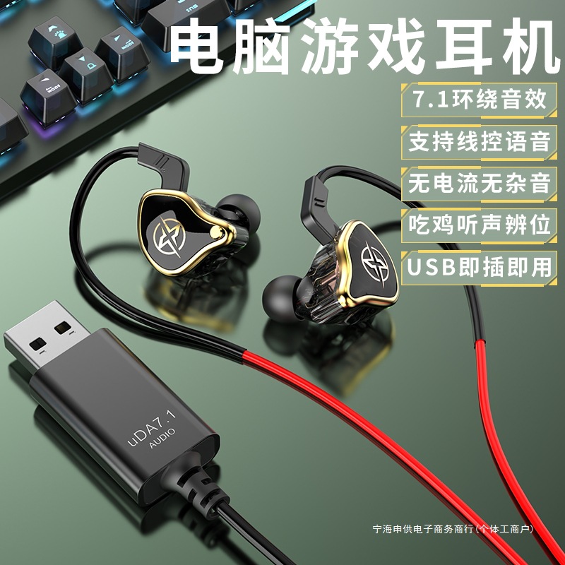 デスクトップコンピュータヘッドホン有線入耳式usbインターフェイス競合ゲームcsノートマイク付き2 in 1 f