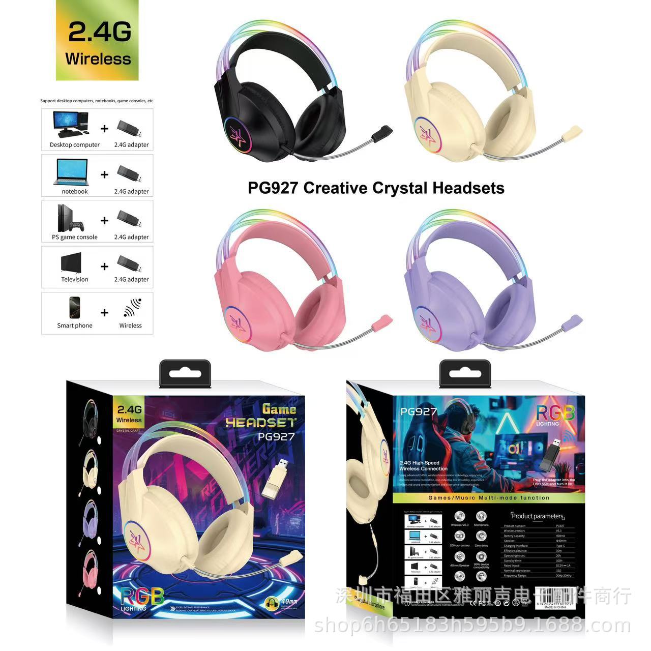 クロスボーダーの外国貿易の熱い販売のpg 927の頭はコンピュータのbluetoothの2.4ghzの無線の無線周波数の電気競争のゲームの発光の耳をつけます。