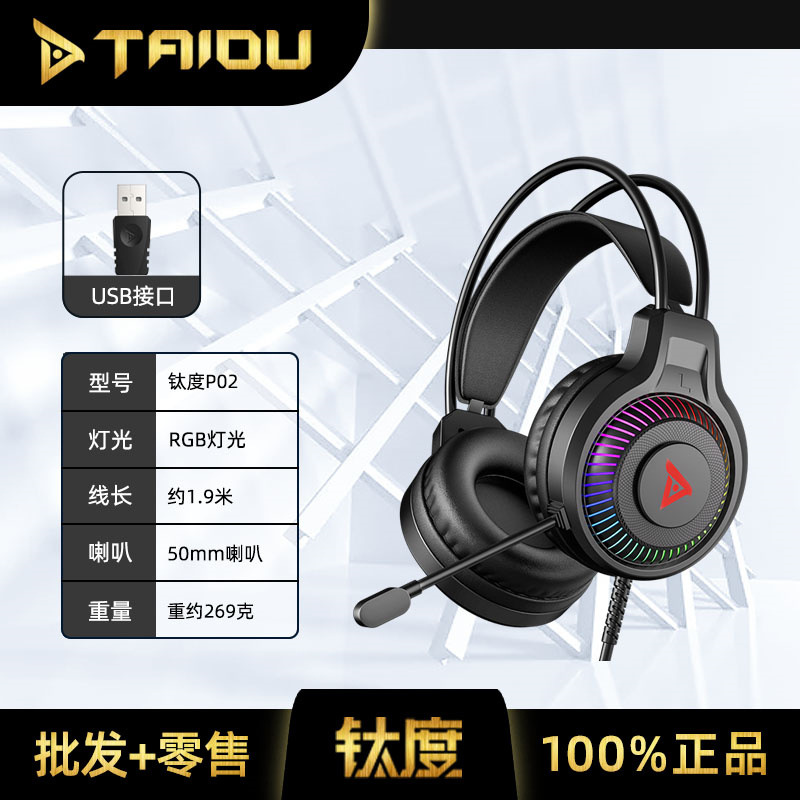 チタン度P02ヘッドセット電気競争ゲームUSB有線マイク付きオーディオコンピュータのノートパソコンのヘッドセット