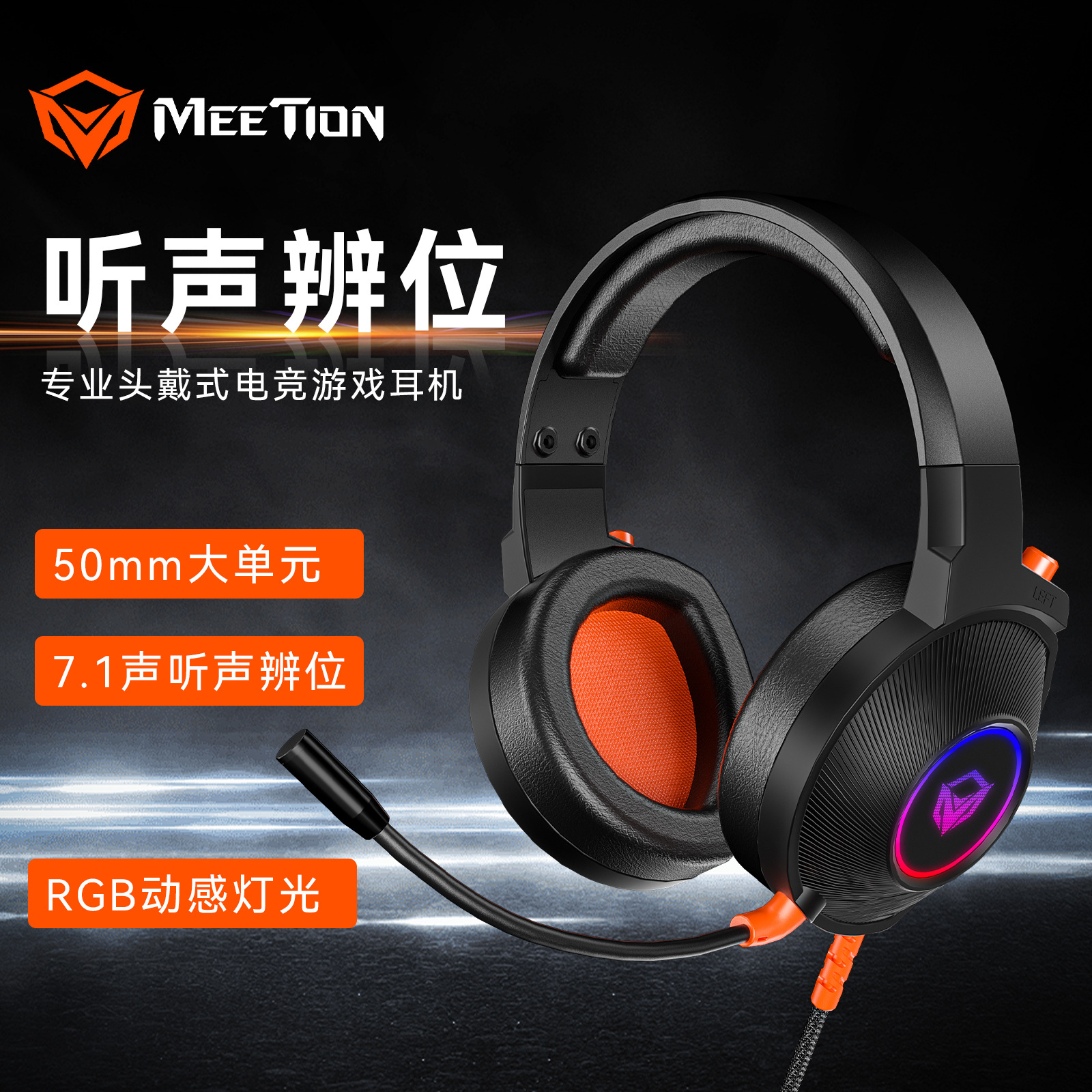 Meetion米神コンピュータヘッドフォン仮想7.1電気競争ゲーム鶏USB有線ヘッドセットマイク付き