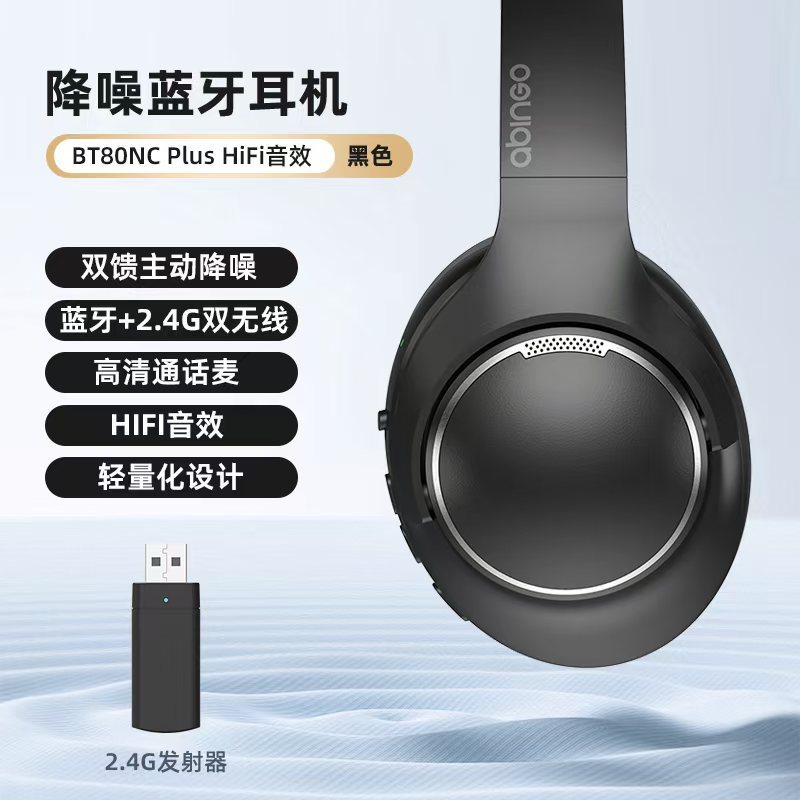 AbingoヘッドセットアクティブノイズリダクションヘッドフォンデュアルワイヤレスハイブリッドノイズリダクションブルートゥースANCワイヤレスゲームヘッドセット