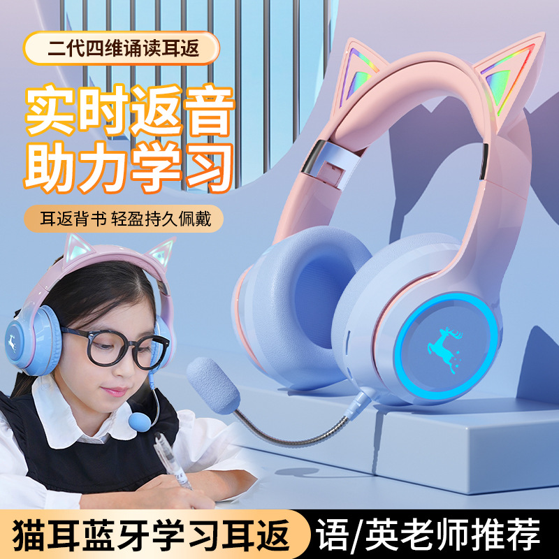 電気商の爆発的な発光猫耳がイヤホンのヘッドセットを勉強して記憶力を高めて朗読して神器を勉強します。