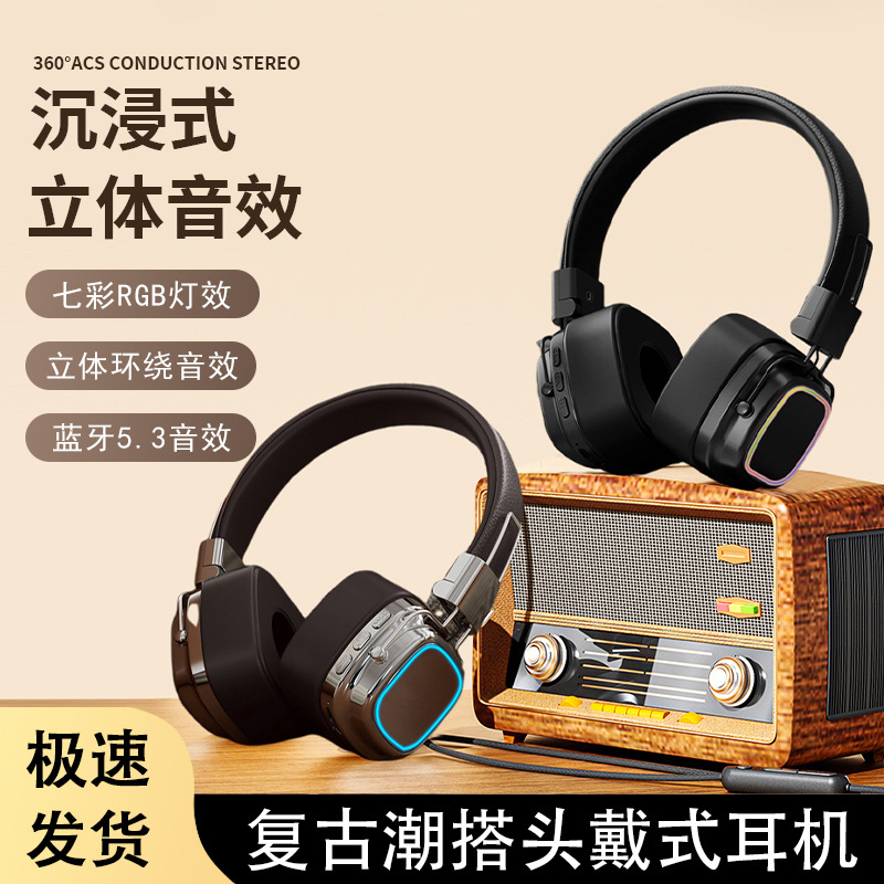 2024新型insアメリカ復古風発光無線bluetooth 5.3ヘッドセット重低音ヘッドセット携帯電話