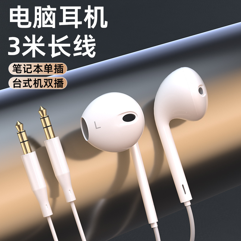 コンピュータヘッドフォンインイヤー有線丸穴ノートブックツーインワン 2.3m 延長ラインサウンドカードライブブロードキャストマイク付き