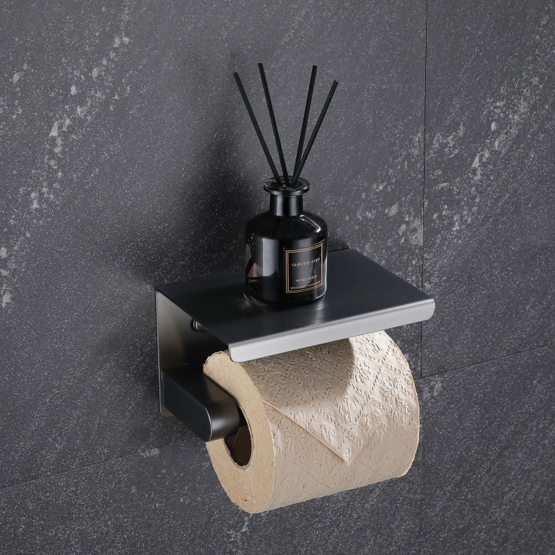 つや消し黒い携帯電話の棚が付いている二重の衛生紙の棚、304ステンレス鋼の壁掛け式の収納可能な浴室の紙