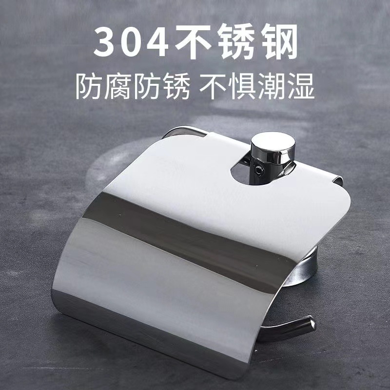 304ステンレス蓋付きティッシュホルダー家庭用浴室穴なし壁掛け巻き紙箱巻き紙棚ティッシュケースクロスボーダー