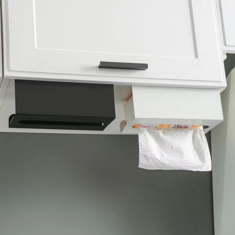 家の台所のティッシュの棚は穴を開けないで鉄の芸用の紙の棚のナプキンのウェットティッシュの棚の食器棚のドアのティッシュの箱は壁式を掛けます。