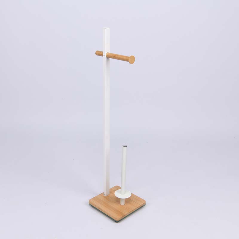ステンレス床ティッシュペーパーホルダートイレ浴室ロール紙縦型トイレブラシ一体収納棚竹木トイレットペーパーホルダー
