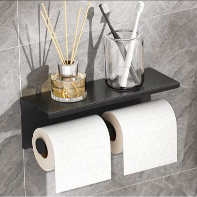 ホテル工事風呂全季同型トイレットペーパーホルダー黒厚手拡幅ペーパータオル棚トイレ二重ティッシュ巻き