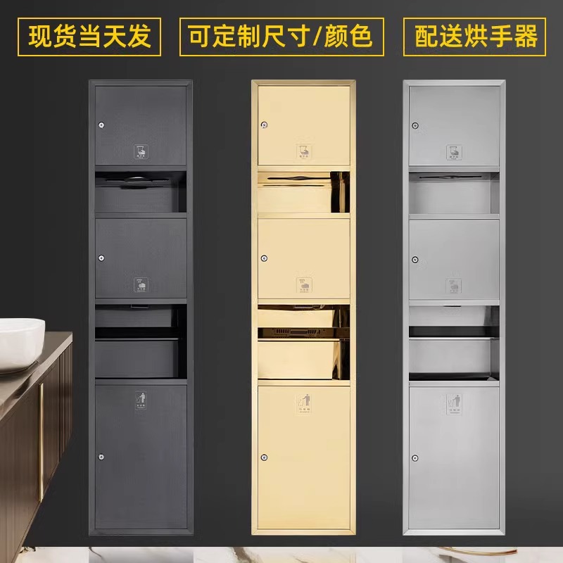 ステンレス三合一手拭き紙箱トイレ吸紙棚箱埋め込み式ゴミ箱付きハンドドライヤー一体機