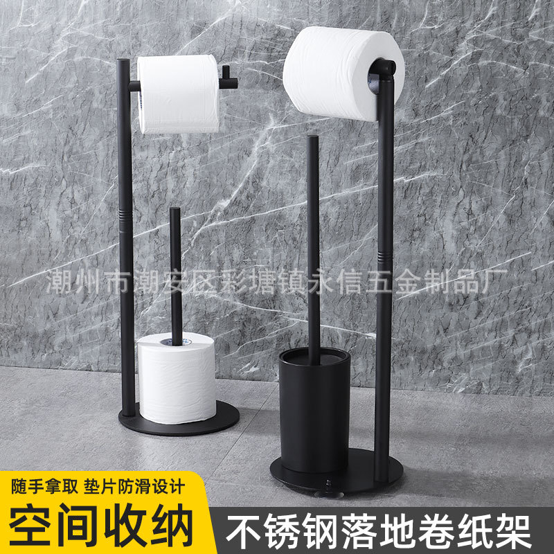 国境を越えたステンレスのシンプルな床のティッシュ棚トイレの立っているロール紙棚トイレのブラシホテルの浴室のトイレットペーパー棚