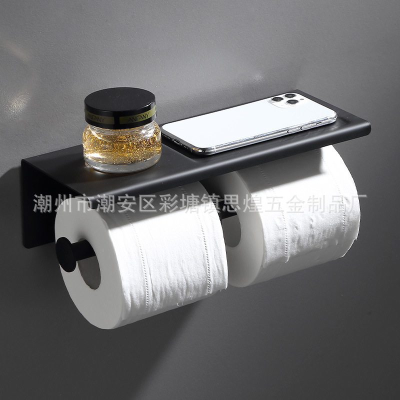 SUS304ダブルロール黒ティッシュホルダートイレ置きホルダー携帯電話トイレットペーパーホルダートイレティッシュボックスティッシュホルダー