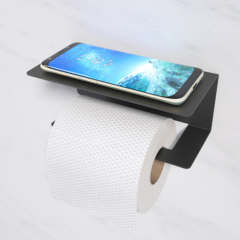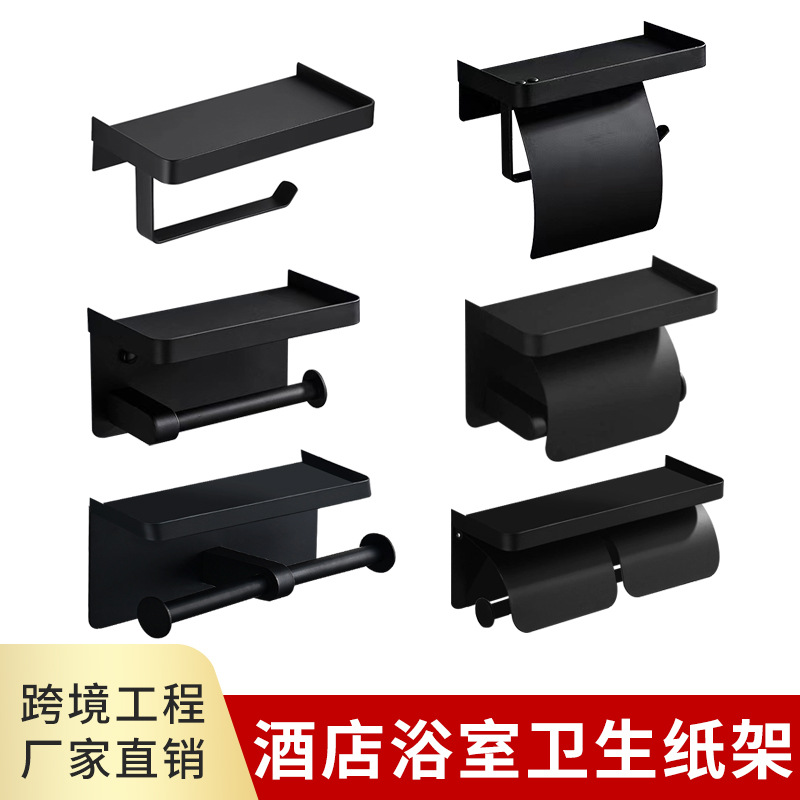304ステンレス黒いティッシュ棚ホテル寮トイレ巻き紙棚浴室穴なし携帯電話トイレットペーパー棚