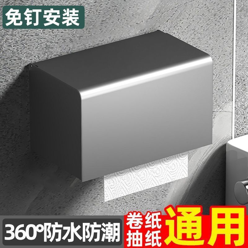 ホテルのバスルーム防水ペーパータオルホルダー、トイレットペーパーホルダー、304ステンレス製トイレットペーパーホルダー、穴あけ不要のロールペーパー収納ボックス