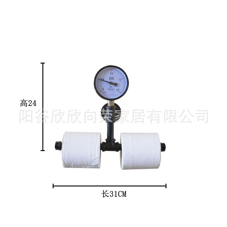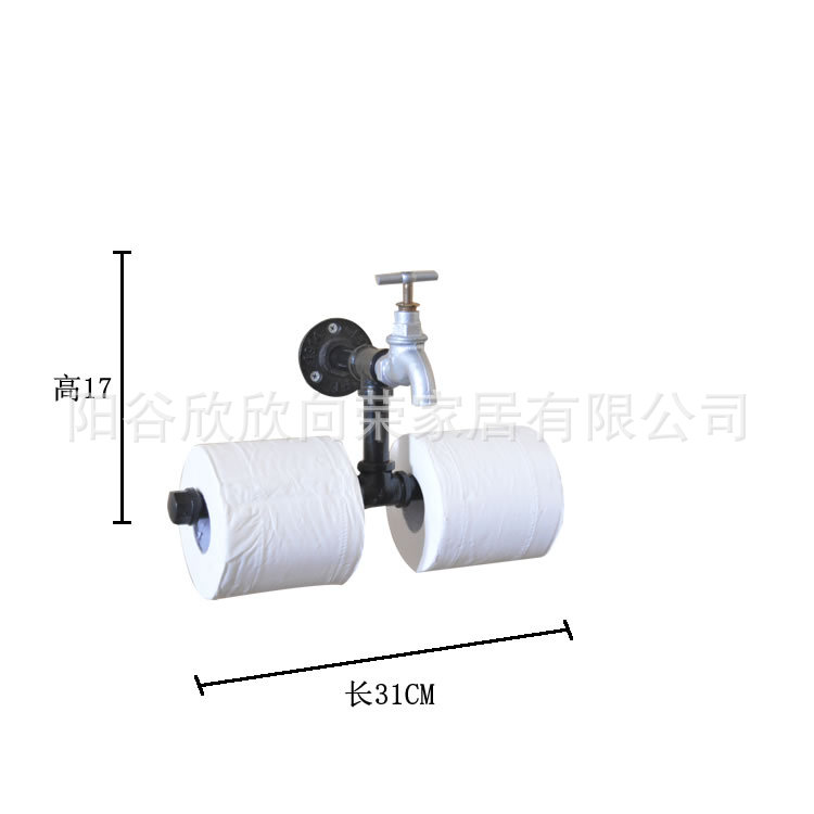 国境を越えたレトロ工業風トイレ紙棚鉄芸水管ロール紙棚浴室黒色タオル棚工場直供