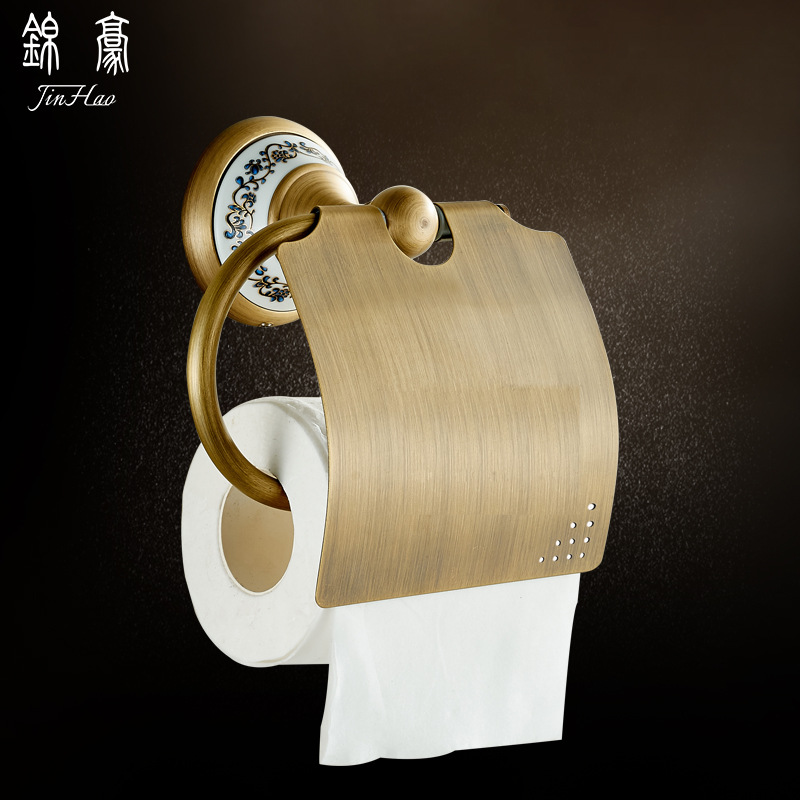 真鍮模造ティッシュ棚ヨーロッパ式レトロトイレトイレットペーパー棚トイレ手紙収納棚青花磁器ロール紙器