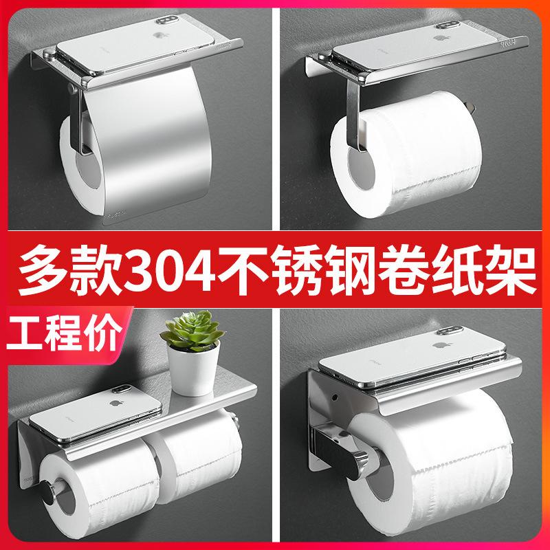 304ステンレスティッシュホルダー浴室携帯電話ホルダーホテル工事トイレットペーパーホルダー巻き紙箱トイレ角型家庭