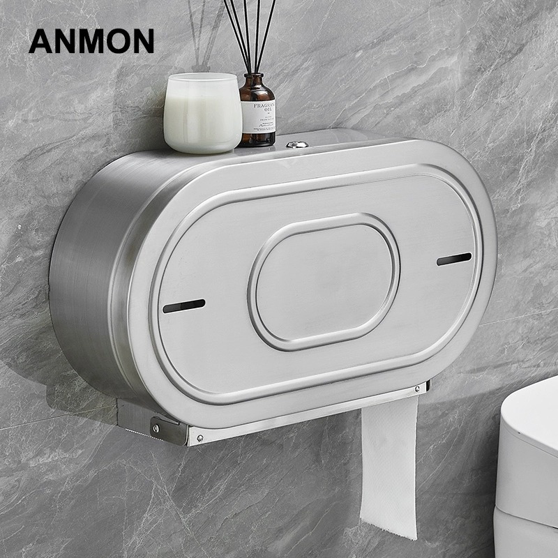 ステンレストイレ二重巻きティッシュ棚大巻き紙箱2巻業務用二重巻き紙公共ティッシュ棚壁