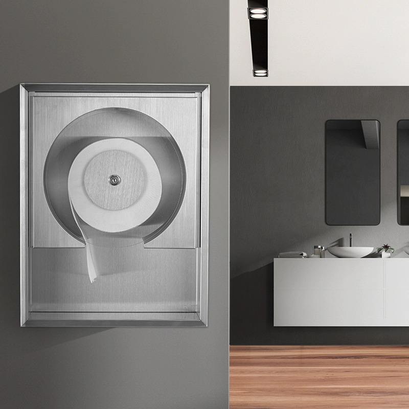 長固304ステンレス商業トイレ手拭き鏡後箱壁式隠しステンレスティッシュ箱