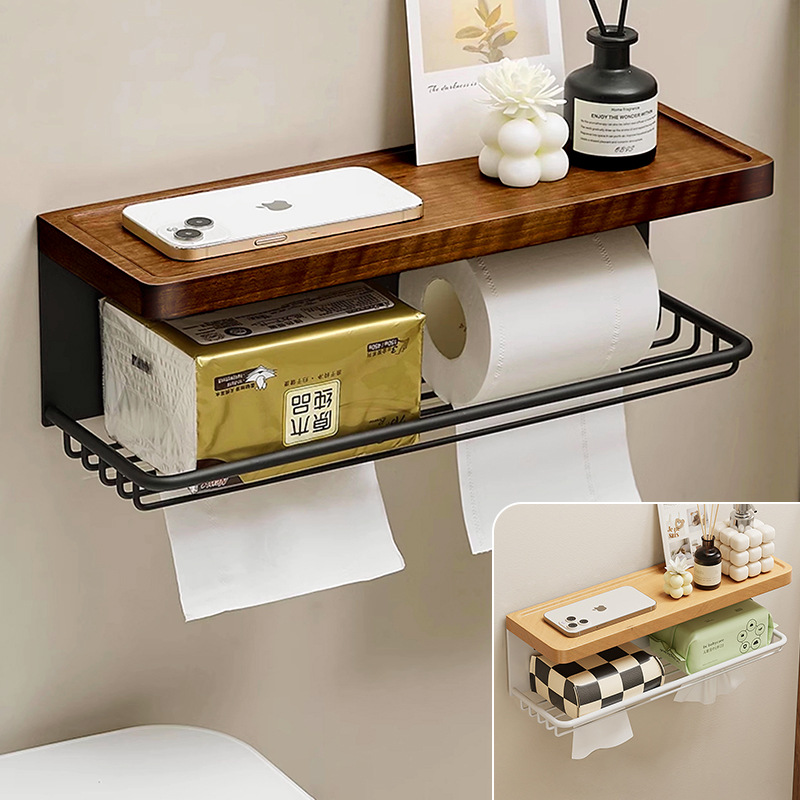 胡桃木トイレティッシュボックス棚壁掛け式引き出し箱浴室穴なしトイレ紙棚ロール紙棚
