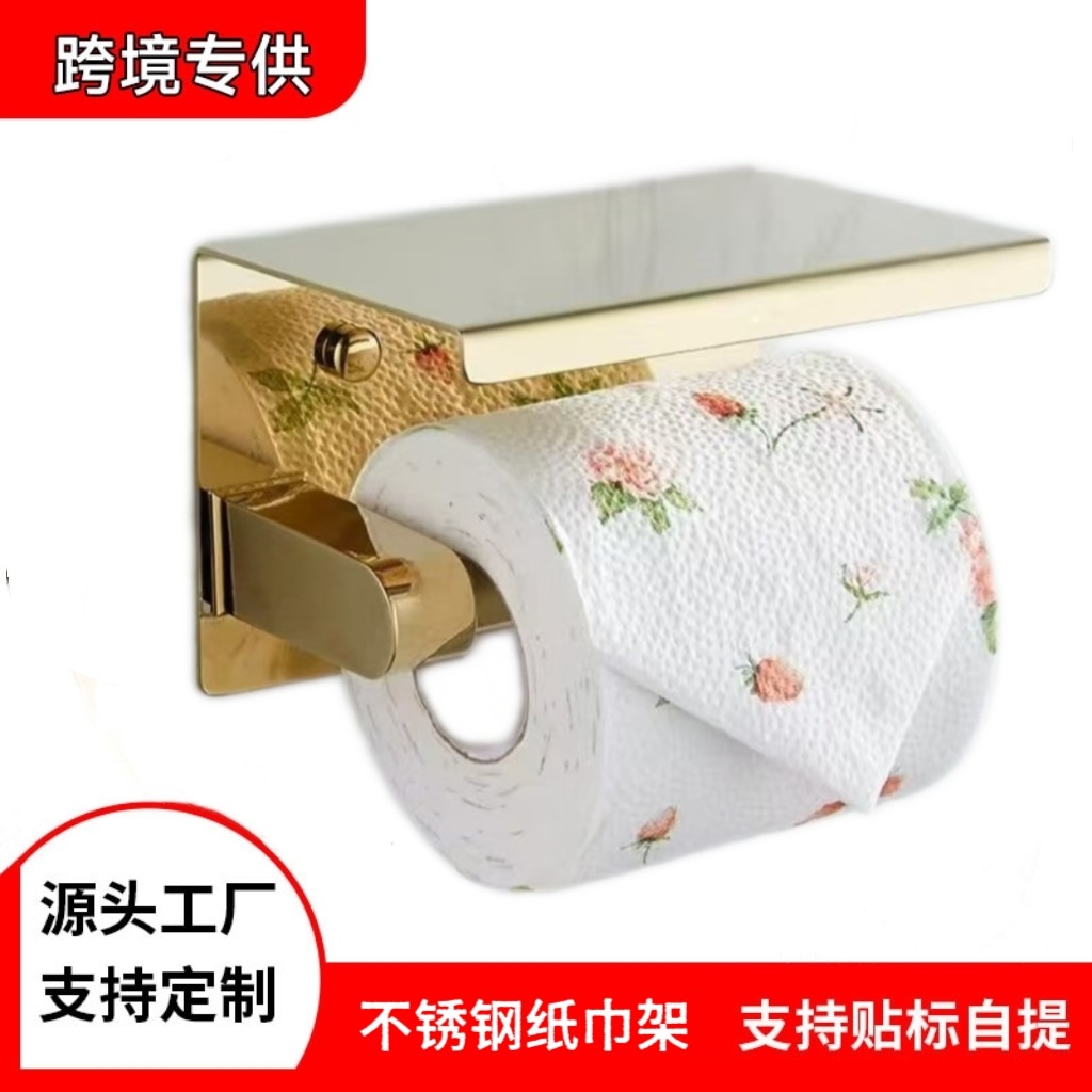 304 ステンレス鋼ロールペーパーホルダーダブルトイレットペーパーホルダーペーパータオルホルダーホテルのバスルームつや消しゴールドクロスボーダーロールペーパーボックスデュアル目的