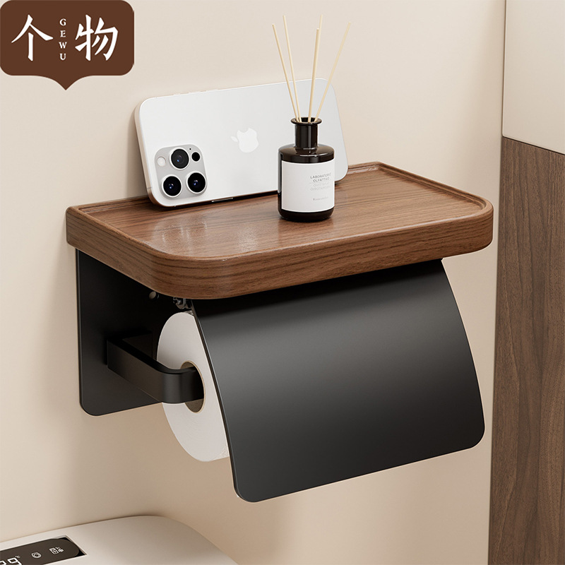 個物胡桃木トイレロール紙棚トイレティッシュボックス穴なし防水棚トイレットペーパー収納ボックス