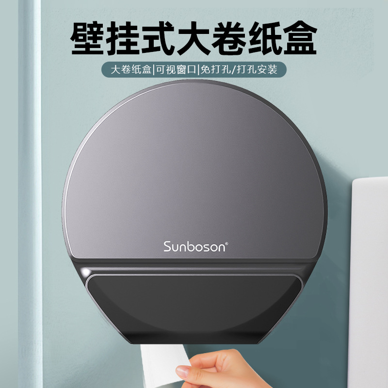 トイレトイレ大巻き紙箱商用公共壁掛け式穴なし大皿ティッシュボックストイレットペーパーホルダー