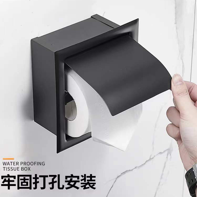 ホテル専用隠しティッシュケース304ステンレストイレ壁式トイレットペーパーホルダー黒色埋め込みロール紙ホルダー