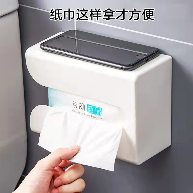 メーカー直供ロールペーパータオル棚トイレ浴室筒吸引紙箱防水壁掛け収納棚置物携帯電話ホルダー