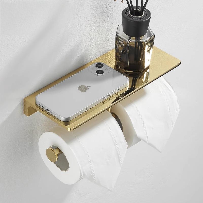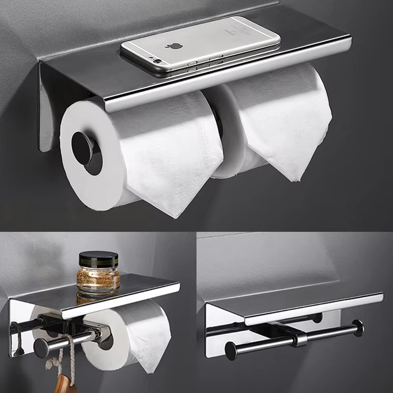 浴室ダブルトイレットペーパーラック 304 ステンレス鋼ロールペーパーラック浴室壁掛け携帯電話収納ラックトイレットペーパーボックス