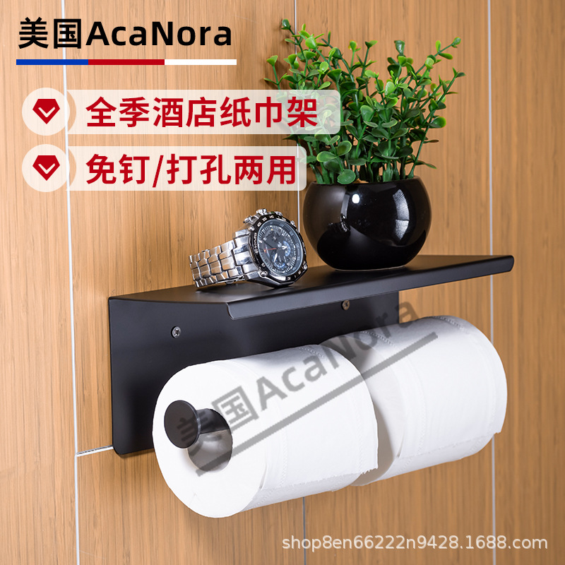 AcaNora オールシーズンホテルのペーパータオルホルダーマットブラックステンレス鋼パンチフリーダブルロッド収納トイレットペーパーホルダー