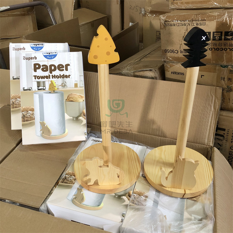 多機能木製ロールペーパータオルラップフィルム収納ラック垂直パンチフリーヘアリングディスプレイラック