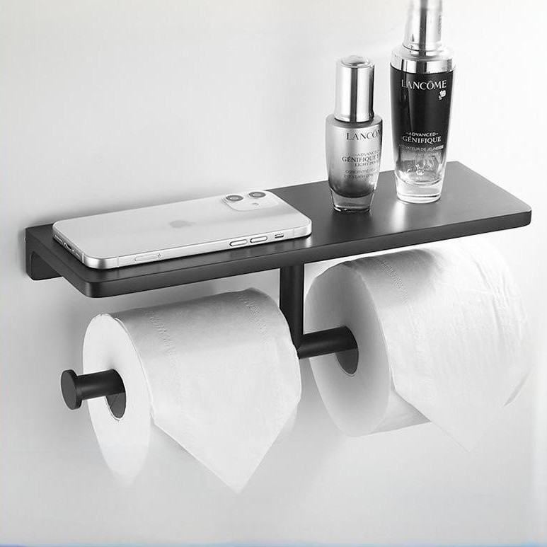 黒のペーパータオルホルダー家庭用トイレロールペーパーホルダーバスルームハードウェアペンダントは、2ロールのトイレットペーパーホルダーを使用できます