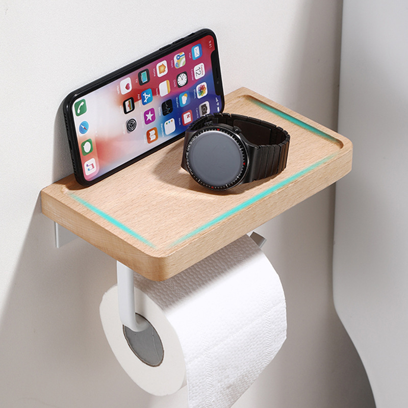 カスタマイズされた北欧スタイルのログ携帯電話ペーパータオルホルダーパンチフリーバスルームロールペーパーホルダーバスルームパンチフリートイレットペーパーホルダー