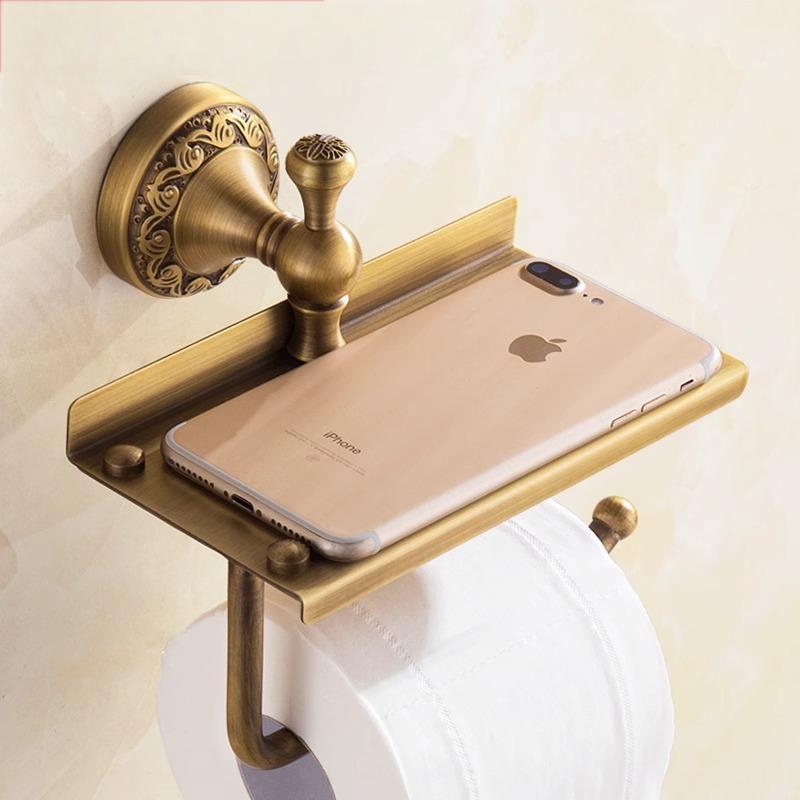 古風な携帯電話の棚のティッシュの棚のホテルの工事のトイレのトイレットペーパーの棚の全銅のヨーロッパ式の穴を開けないで紙の棚を巻きます。