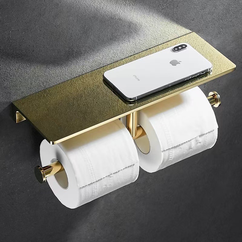 ゴールデン全銅ペーパータオルホルダー携帯電話収納ラックバスルームホテルバスルームペーパーボックストイレットペーパーホルダーエンジニアリングロールペーパーホルダー