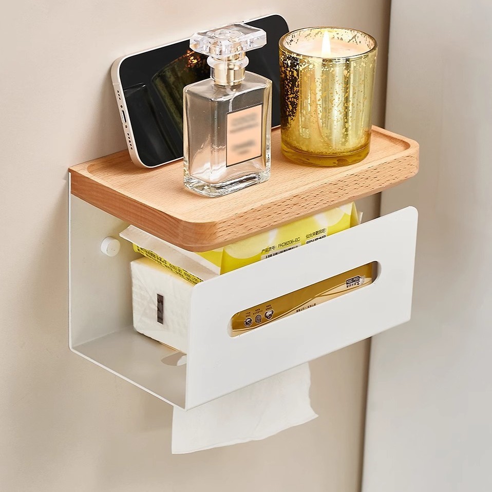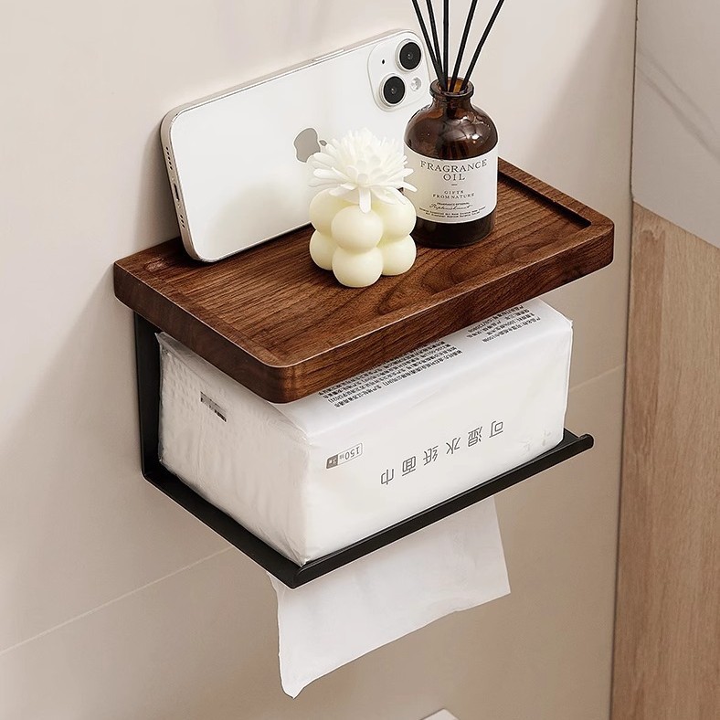 ウォールナットバスルームティッシュボックス収納ラック壁掛けティッシュボックスバスルームパンチフリートイレットペーパーホルダーロールペーパーホルダー