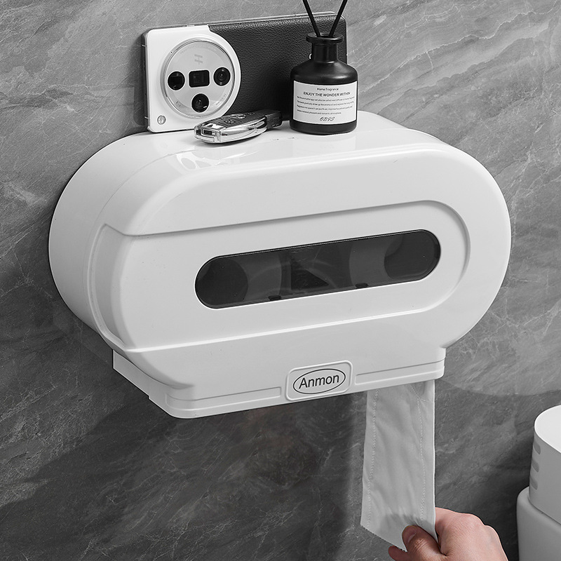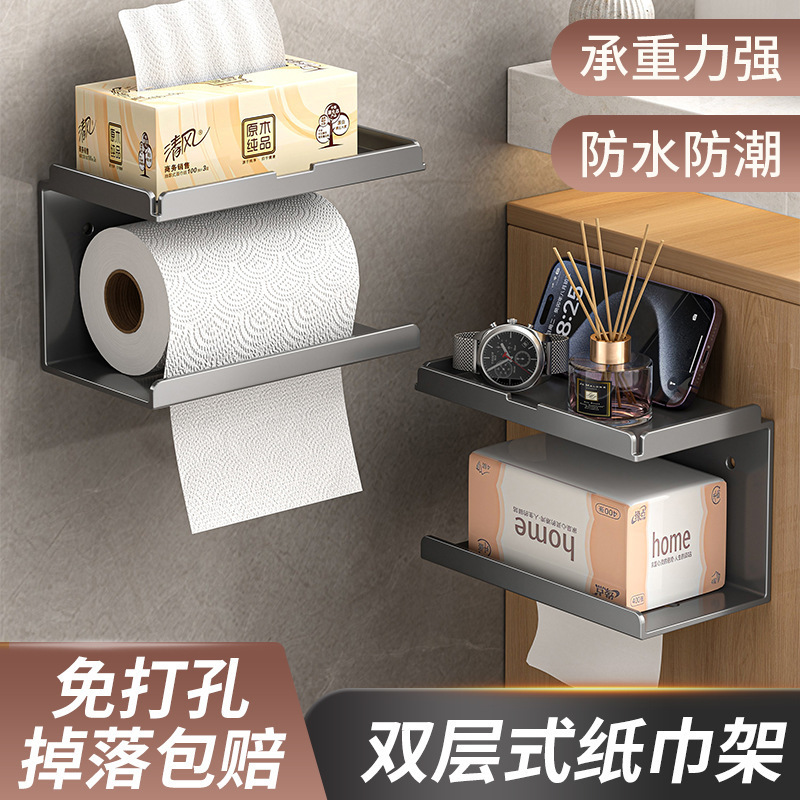 カスタマイズされたバスルームパンチフリーティッシュボックストイレットペーパーホルダーバスルーム壁掛けロールペーパーボックス二層ドラマ視聴可能