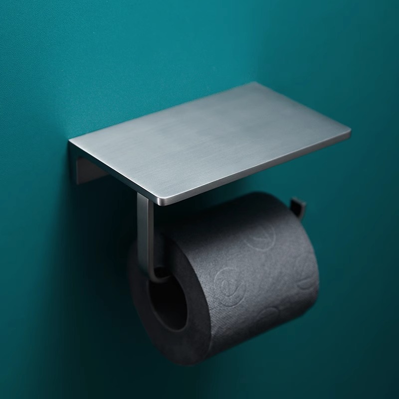 304ステンレスティッシュホルダー銃グレー穴なしトイレ携帯電話置物ロール紙ホルダー浴室トイレットペーパーホルダー