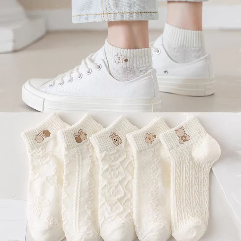 クラウドホワイト春夏漫画レディース白ソックス吸汗消臭浅口ローカットソックストレンディソックス卸売ボートソックス女性用