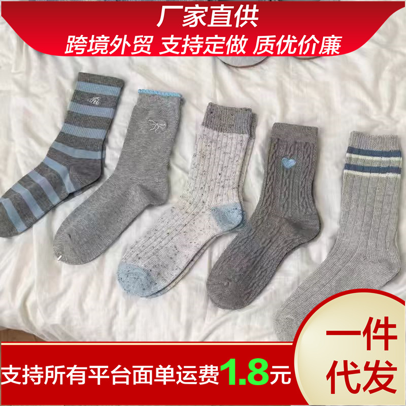 春の夏のシンプルな風に合わせて、新しい女性の靴下の灰色のシリーズの超保温の快適な綿の靴下の中の筒のファッションの山の靴下