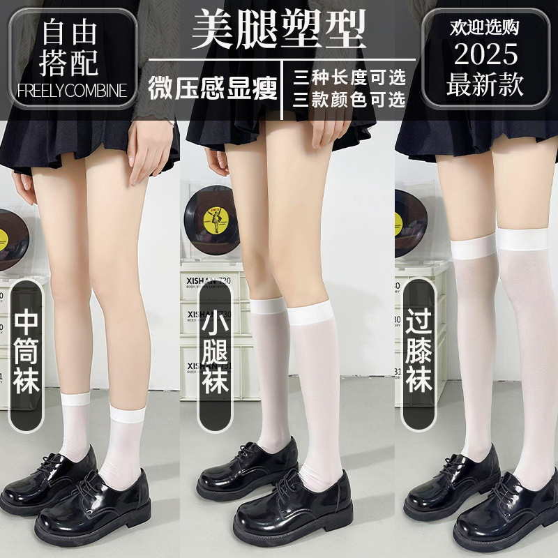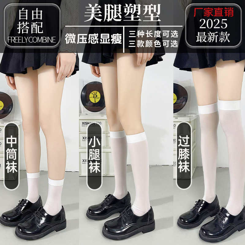 ふくらはぎソックス日系jk靴下ビロード黒糸ストッキングやせ脚女性中筒夏薄い白い膝ストッキング