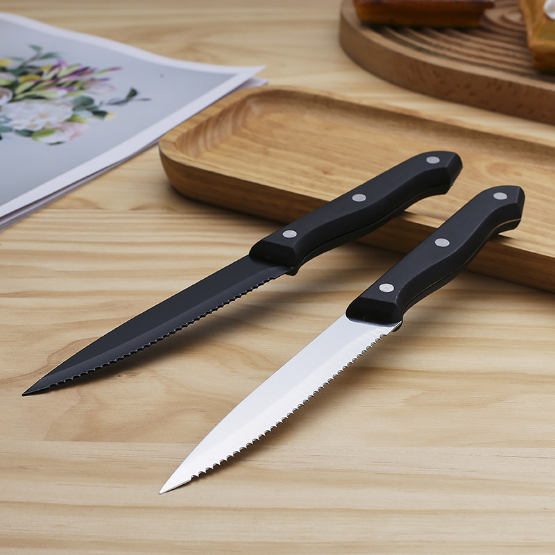 国境を越えたアマゾンで爆発したステーキナイフのプラスチック製の柄420ステンレス製の牛スリナイフ洋食ステーキナイフ卸売り