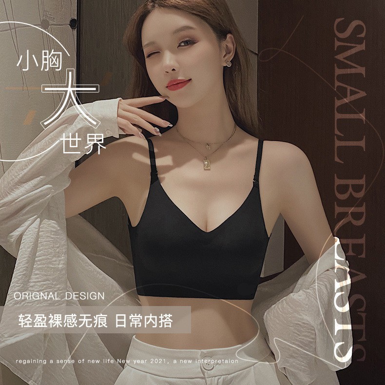 細い肩紐リキッドファンデーションシームレスクール下着小胸プッシュアップゼリーストリップソフトサポートセクシーバックブラ