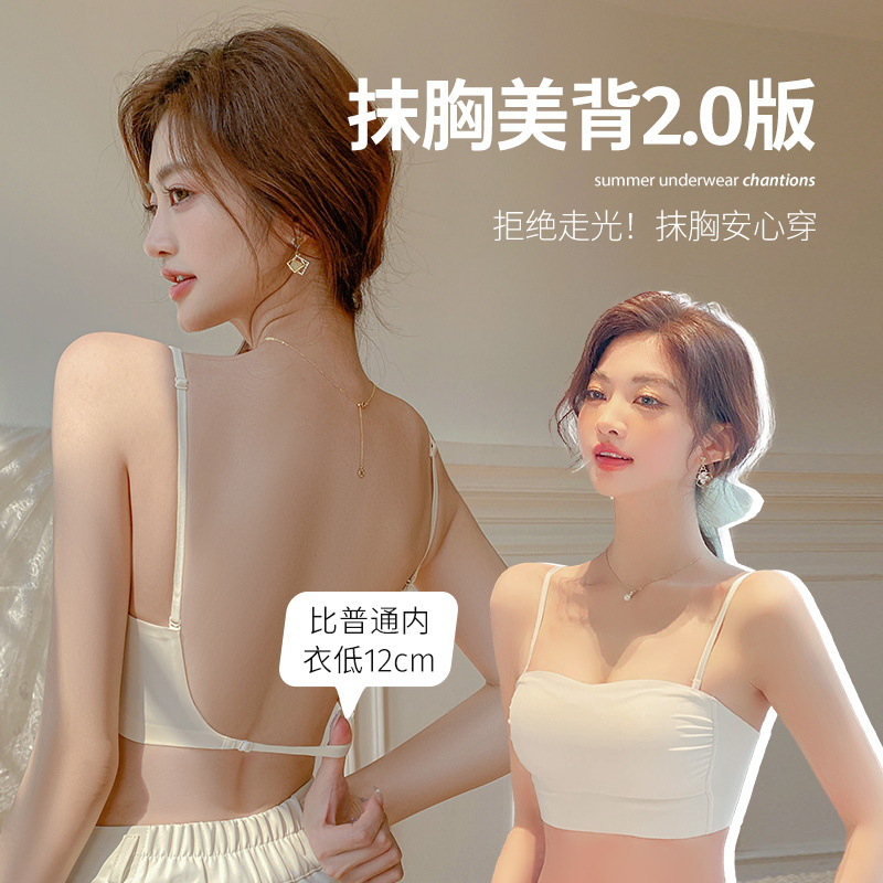 女性用チューブトップ下着、細いショルダーストラップ、小さな胸を押し上げて背中を美しくする、新しいサスペンダースカート、特別なベスト、一体型インビジブルブラ