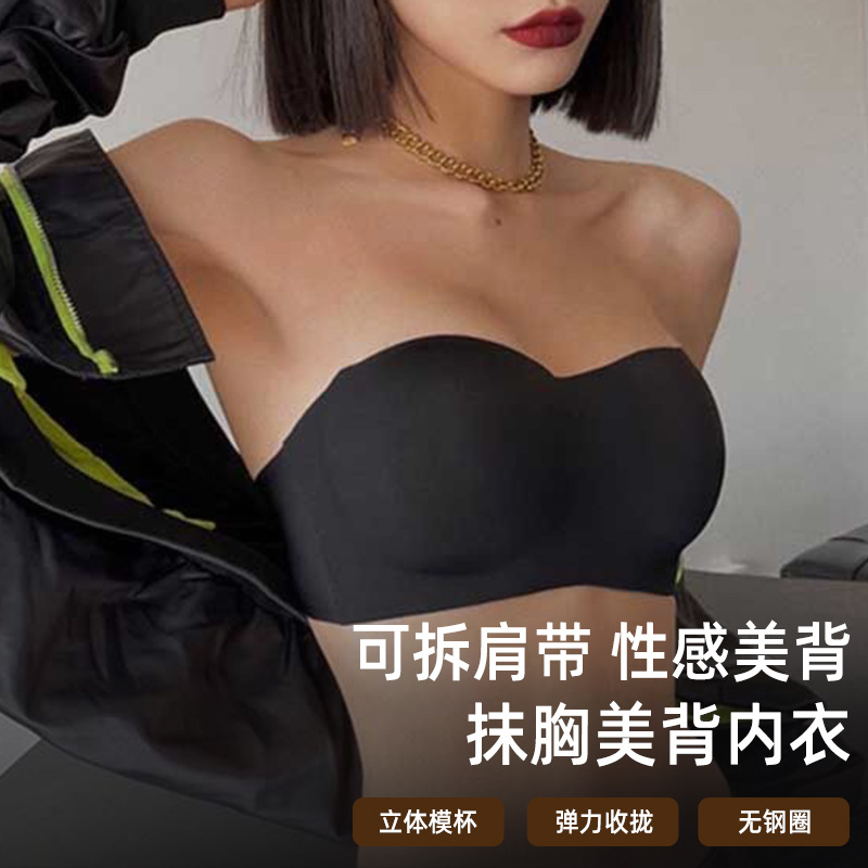 女性用美背中下着、細いショルダーストラップ、チューブトップ、スリング、小胸プッシュアップブラ、オールインワン2025新作人気薄型胸巻き