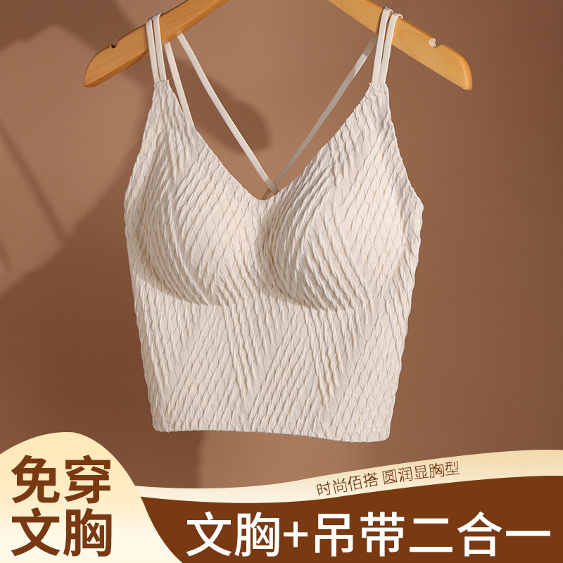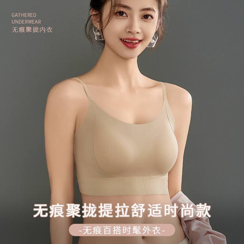 固定カップシームレスバックブラジャーサスペンダーリムなしリフティングプッシュアップボトムサスペンダーチューブトップベスト下着女性用
